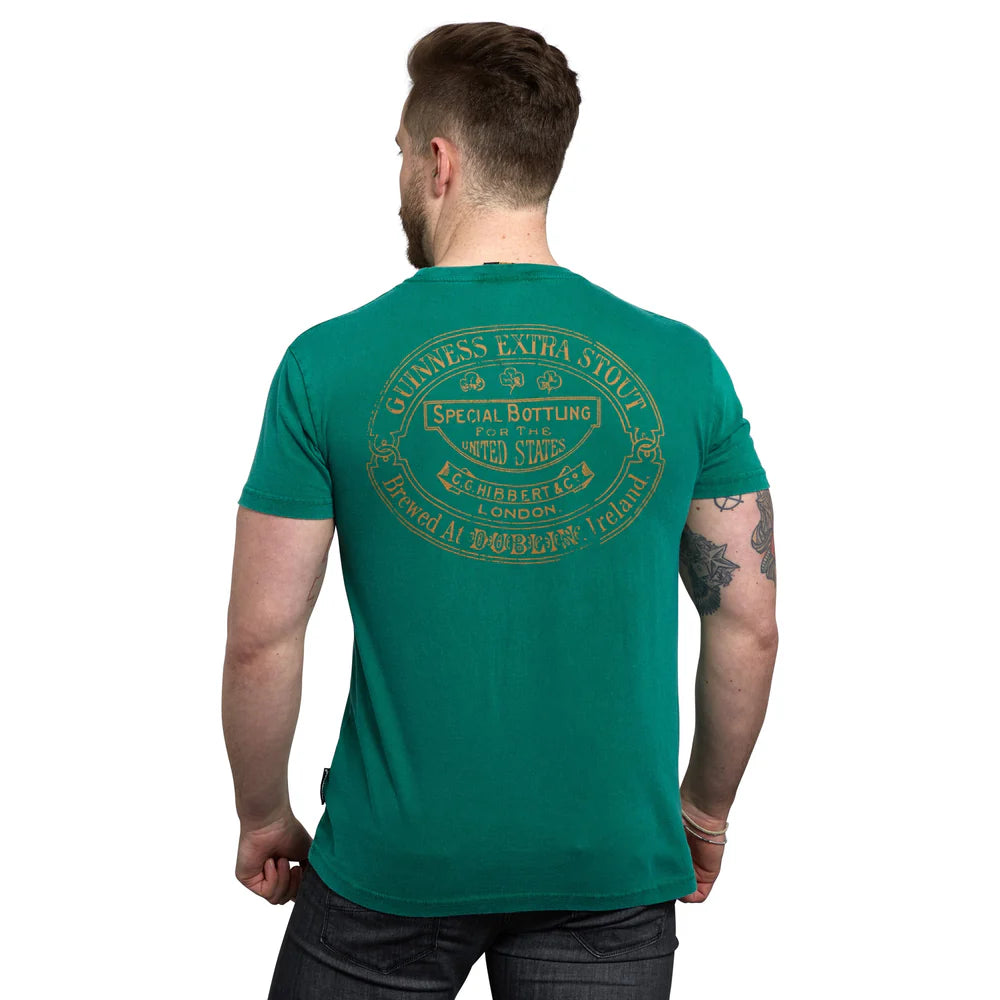 The t-shirt comes in a washed Green with a distressed Guinness® Trademark label screen printed on the front and unique Guinness® Extra Stout label screen printed on the back.