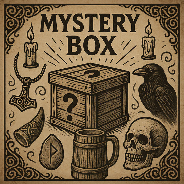 Dare to open a box? Each mystery box is loaded with a hand-picked mix of Viking, Norse Mythology and/or Gothic-inspired gear — drawn from our overstock, discontinued lines, and exclusive item, many that you won’t even find on our website. Expect the unexpected: jewelry, wall art, runes, home decor, horn mugs and more. No fluff. No filler. Just awesome Viking and Gothic related merchandise at a fraction of its original price.